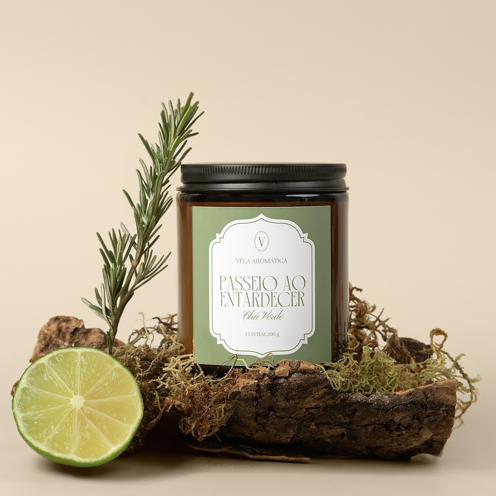Como caminhar em um jardim verdejante sob o sol suave do fim de tarde. A vela aromática Passeio ao Entardecer traz o frescor contemplativo do chá verde, envolvido por notas cítricas, especiarias sutis e um fundo delicadamente almiscarado. Um aroma herbal e aromático que convida a desacelerar, respirar fundo e estar presente.